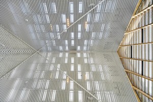 Hunter Douglas played a key role by supplying custom ceiling and wall solutions that aligned with the project’s ambitious design and acoustic requirements. The result is a visually cohesive and high-performing interior environment.