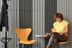 Made from thermoformed felt, the Groove Wall enhances room acoustics while adding a soft, warm appearance. The material is durable, dirt-resistant, easy to maintain, and suited to a wide range of interiors, including offices, schools and public buildings.