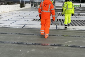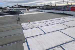 The magnesium oxysulfate boards were installed over metal roof deck sheets by specialist sub-contractor Q9 Cladding Solutions for main contractor BAM to help provide a lightweight, flat surface for the waterproofing.