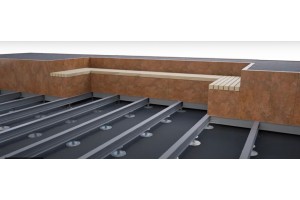 The harmonised, super flat, solution begins with Wallbarn’s MetalPad Ex pedestals and I‑Plus aluminium joists. Where planters or seating are planned, fixing-free galvanised steel trays are inserted to support the additional weight, creating a robust non-combustible sub-floor onto which hard surface finishes can be laid - for example premium porcelain decking, timber-look tiles or natural stone paving.